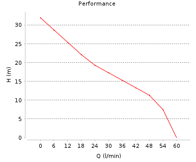 | 1" | 25 mm | 6 m | 60 lt/min | 32 m |