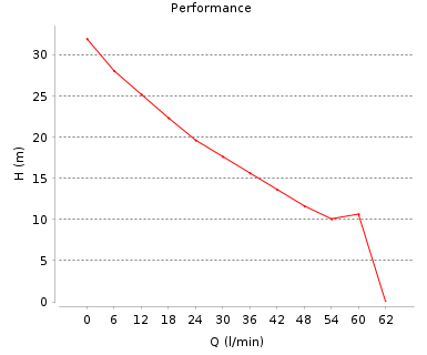 | 1" | 0 mm | 6 m | 62 lt/min | 32 m |