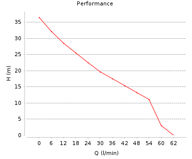 | 1" | 25 mm | 6 m | 62 lt/min | 36 m |